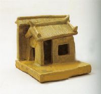 豬圈為一長方形小屋,懸上頂,正脊兩端微翹,屋面劃刻瓦壟紋。屋正面設(shè)一門一窗,左面開一小門,屋內(nèi)靠窗處置一食槽。屋后緊依一堵高墻。