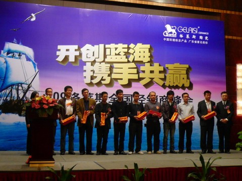 會議的最后環(huán)節(jié),是為2008年在各方面取得優(yōu)異成績的經(jīng)銷商頒發(fā)格萊斯陶瓷年度營銷獎,一大批在寒冬歷練仲取得優(yōu)異成績的優(yōu)秀經(jīng)銷商得享尊榮。