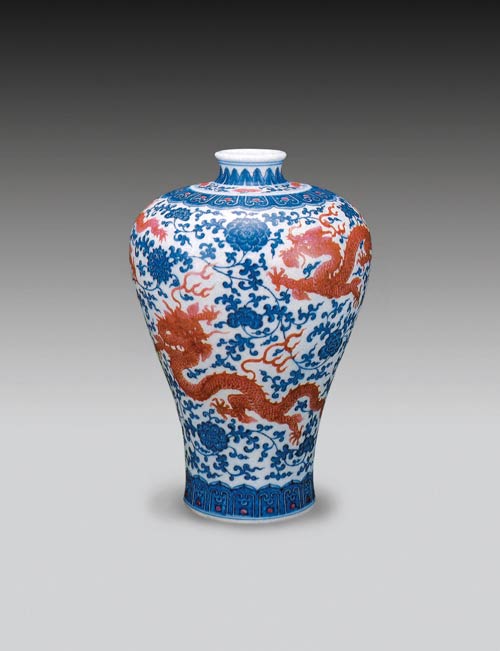 數(shù)千件明洪武年間景德鎮(zhèn)的瓷片在挖掘機下出土,其中最為耀眼的就是釉里紅。雖然都是殘片,但一點也不影響它的珍貴價值。釉里紅,這種稀少的瓷器品種開始不斷引起人們的注意,并以其卓然大氣的風范,成為瓷器收藏中真正的貴族。