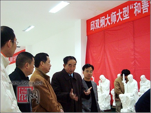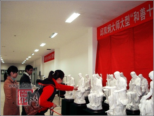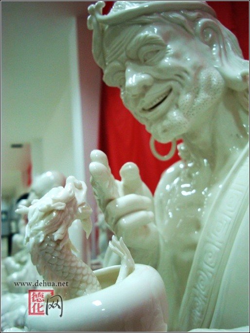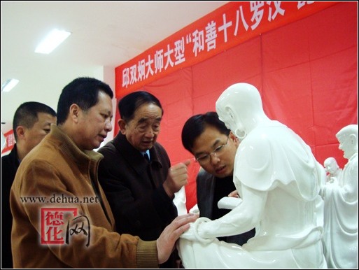 【德化網(wǎng) 訊】“中國白”大型雕塑《和善十八羅漢》是德化縣鳳凰陶瓷雕塑研究所所長(高級工藝美術(shù)師、福建省工藝美術(shù)大師)邱雙炯先生應(yīng)邀為2009年三月在江蘇省無錫靈山召開的世界佛教論壇大會“天花爛漫”展覽項目參展而作。歷時一年多時間煉制完成,于牛年的正月初一至十五(2009.1.26-2.09)期間在德化陶瓷博物館隆重推出展覽。市民們可以在此期間前往參觀。