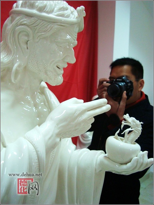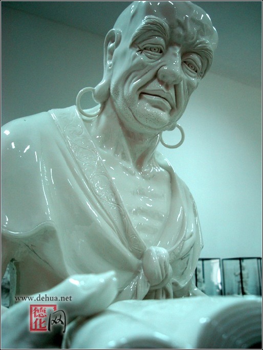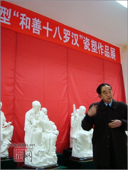 此次展出的“和善十八羅漢”作品選用被譽為“中國白”純凈上乘瓷土為原料,其配方經(jīng)無數(shù)次研究實驗,克服了大體積的中國白瓷在高溫?zé)捴七^程中易開裂軟塌變形等困難,精心設(shè)計、設(shè)計、精雕細刻并經(jīng)1300度以上高溫煅燒而成。作品高約1米左右,重100多斤,體量較大,造型各異,質(zhì)地潔白無瑕,晶瑩剔透,;潭雀,瓷質(zhì)堅實不吸水不變質(zhì),這是德化縣瓷壇史上的又項突破,打破以往外界認(rèn)為“德化陶瓷無大器”的看法。