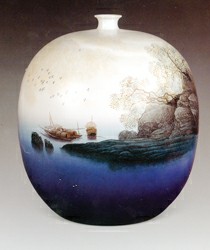 江西高級工藝美術師解強的“故鄉(xiāng)的云小口圓瓶”