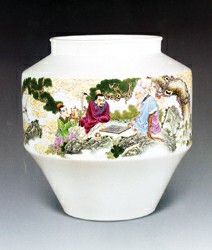 中國工藝美術大師李進的“粉彩梅妻鶴子雙耳福桶瓶”