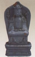 觀音跌坐於須彌座上,背後有扇形開光,頸戴寶冠,身披袈裟袒胸,體態(tài)端正,面容清秀,直鼻小口,雙目微合,形貌慈祥。通體施影青釉,釉色熒潤,胎厚質(zhì)堅,觀音形象給人以端莊凈潔之感。瓷觀音最早見於北宋時期。此件屬景德鎮(zhèn)窰之作。