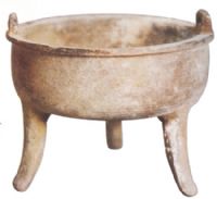此鼎造型古樸,挺拔,器表打磨光亮,與銅器十分相像,惟掂重量方知為陶器。春秋晚期至戰(zhàn)國(guó),陶器製作流行仿制青銅器的造型和紋飾。