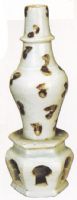 用褐彩裝飾瓷器在我國出現(xiàn)較早,南京出土有三國時(shí)褐彩壺。雨晉南朝褐彩流行,宋元晴偶有採用。此瓶蓮座褐彩造型端正,釉彩美觀,屬典型元代製品,在元瓷中常見。成封出土,惟缺紀(jì)年資料。