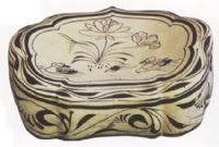 圖片名稱: 磁州窰白地黑花鴨蓮紋枕