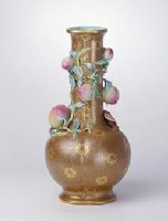 圖片名稱(chēng): 醬地描金凸雕靈桃瓶