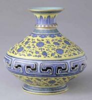 圖片名稱: 黃地青花纏枝花紋轉(zhuǎn)心瓶