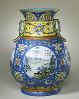 圖片名稱: 粉彩加琺瑯彩開光山水紋轉(zhuǎn)頸瓶
