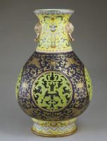圖片名稱: 粉彩鏤空蟠螭紋象耳轉心瓶