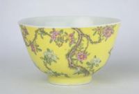 圖片名稱: 黃地琺瑯彩桃花紋杯