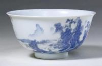 圖片名稱: 藍料彩山水圖碗