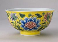 圖片名稱: 黃地琺瑯彩纏枝牡丹紋碗