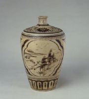 圖片名稱: 彭城窯白地黑花開光山水花卉紋瓶