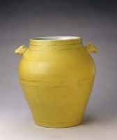 低溫黃釉器創(chuàng)燒于明初景德鎮(zhèn)官窯,以后各朝多有制作,但以弘治朝產(chǎn)品最受人稱道,其燒制水平達到了歷史上低溫黃釉的最高水平。因當(dāng)時以澆釉法施釉,故有“澆黃”之稱,又因其呈色嬌嫩,故又有“嬌黃”的美譽。