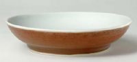 傳世的成化鮮紅釉瓷器極其罕見,故極珍貴。前些年景德鎮(zhèn)珠山成化官窯遺址出土成噸的瓷片標(biāo)本,鮮紅釉瓷標(biāo)本僅屬個(gè)別,而上述鮮紅釉盤標(biāo)本亦屬僅見,說明成化鮮紅釉瓷只是偶然燒造。這種盤的造型、釉質(zhì)(釉內(nèi)氣泡、桔皮紋等)均極似宣德鮮紅釉盤,如無款識(shí),極易被誤認(rèn)為是宣德器。