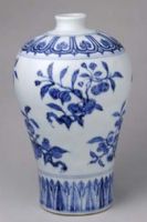 清雍正、乾隆時官窯曾仿造此梅瓶,造型、釉色較接近原物,唯青花的鐵結(jié)晶斑點過于均勻、細潔,與永樂青花自然暈散的風格有別。
