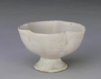 杯口呈五瓣花形,器身呈花瓣?duì)睿咦阄⑼馄。通體施白釉。此杯造型仿金銀器中花瓣形高足杯而制,精致細(xì)巧,釉色潔白,釉質(zhì)光潤(rùn),體現(xiàn)了宋代白瓷的燒制水平。