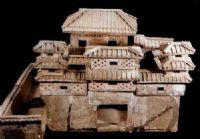 莊園由田園和宅第兩部分組成。宅第為三進(jìn)院落,布有懸山頂、四阿頂建筑,高低參差,錯落有致,內(nèi)設(shè)伎樂俑、仆侍俑及生活器皿一應(yīng)俱全。宅旁連以水旱農(nóng)田、水井、溝洫等,前墻上繪有主仆生活圖(已脫彩)。