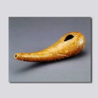 首都博物館藏。流部上翹,腹部有一心形口。平底露胎,胎質灰白。里外均施青黃色釉,有細小開片。施釉較薄,有剝釉現象。灌藥器為獸醫(yī)灌藥之用。