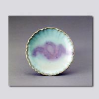 首都博物館藏;ò昕冢瑴\腹,圈足。盤內(nèi)施月白色釉,盤心釉上有一塊不規(guī)則的紫斑。盤外壁施半截釉,向下垂流。(關(guān)于元代鈞窯)