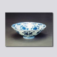 首都博物館藏?,斜壁,圈足。內(nèi)外均繪折枝花及象征吉祥的石榴、仙桃、荔枝、枇杷等果實(shí)。足壁為卷草紋。外底書有“大明宣德年制”6字楷書款。青花色澤濃麗,胎質(zhì)堅(jiān)硬,為景德鎮(zhèn)官窯中的佳品。
