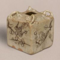 說 明: 器呈四方形。器外均施青白釉,青花呈灰黑色,筆繪簡練隨意,清新活潑。