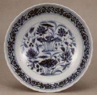 說 明: 內(nèi)外繪青花,內(nèi)口沿繪卷草紋一周,內(nèi)心繪蓮池紋。