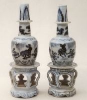 圖片名稱: 景德鎮(zhèn)窯青花玉兔紋帶座供瓶