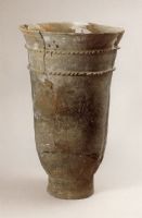說 明: 砂質(zhì)紅陶。敞口、深腹斜直壁,圓底,高圈足。