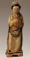 說(shuō) 明: 瓷俑頭束包髻,圓面細(xì)目,高鼻小口。