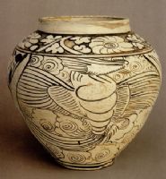 圖片名稱: 磁州窯白釉黑花龍鳳紋罐