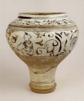圖片名稱: 磁州窯白釉黑花人物罐