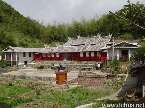 而這諸多廟宇中屬戴云寺最為突出,它位處于赤水鄉(xiāng)戴云村。史載,遠(yuǎn)在南北朝,就有僧人到此開基建寺。唐時,泉州開元寺僧但膊(名知亮)仰慕鐘靈毓秀的戴云山,常自言曰:“身在紫云,顯在戴云。”大中十二年(858年),他逝世后,徒弟將其遺體運(yùn)往戴云山寺,塑像奉祀,后其師慈感亦在此坐化。兩位僧人同被崇奉為戴云山寺的始祖。該寺始建于五代后梁開平二年(908年),宋端拱二年(989年)僧懷整重建。今寺宇附近尚存有南宋淳佑四年(1244年)建的石板橋,大殿正中有明洪武二十年二月建的拜壇立石,上下殿有清康熙甲子(1684年)、乾隆庚辰(1760年)、乾隆已丑(1769年)部分維修的記載碑石。殿宇系木構(gòu)歇山頂建筑,梁架結(jié)構(gòu)簡單。今寺宇外觀保存基本完整,規(guī)模宏敞,為目前德化保存最大的寺廟。寺內(nèi)目前尚存有明代萬歷三十二年進(jìn)土、書法家張瑞圖題刻的“豪余精舍”殘匾,部分殘缺的木刻楹聯(lián)。戴云寺周圍風(fēng)光秀麗,景物玄奇,昔有十六勝景之稱,許多文人墨土在此吟詩題詠,流連忘返。
