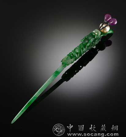 在慈禧太后辭世百年之際,佳士得推出一場(chǎng)“大雅珍寶:慈禧太后與晚清的宮廷藝術(shù)珍品”專拍,包括70件與慈禧相關(guān)的宮廷藝術(shù)珍品,最珍貴的當(dāng)屬一支御制翠玉透雕盤龍頭簪,估價(jià)800萬港幣。