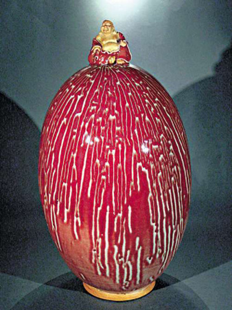為了賦予鈞瓷新的生命,閻夫立孜孜矻矻于鈞瓷藝術(shù)的開拓,大膽革新,銳意求變。閻夫立認為,鈞瓷「生在選土,長在造型,死活在燒成」。在選土上,廣采博選,甚至以黃河泥和麥飯石為原料;在造型上,他將雕塑與瓷藝完美地糅合在一起,創(chuàng)造出了器皿、卵石、人物、動物、神燈等各種系列,以及漢風、唐韻等造型雕塑藝術(shù)系列。在燒制方面,他改建了天然氣窰爐,大大縮減燒制時間,合格率提高到九成。