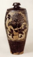 圖片名稱: 黑釉剔粉雕劃牡丹花紋瓶