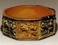 說 明: 胎呈紅色。內(nèi)壁施黃褐釉,底無釉。