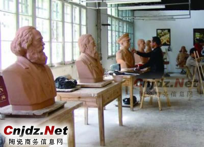 走進(jìn)位于景德鎮(zhèn)陶瓷廠這家昔日以生產(chǎn)“三角牌”釉面磚而名揚中外的陶企廠區(qū)內(nèi)的景德大成公司,記者看到,公司近1000平方米的創(chuàng)作基地讓人眼前一亮,赫然一派現(xiàn)代企業(yè)的架構(gòu)——研發(fā)中心、設(shè)計中心、創(chuàng)作中心、展品陳列中心、資料中心等一應(yīng)俱全。藝術(shù)家們正在進(jìn)行雕塑創(chuàng)作,兩座窯爐靜“臥”一旁,隨時候命。