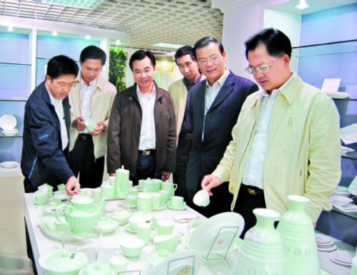 在廣東四通集團(tuán)公司調(diào)研時(shí),駱文智一邊認(rèn)真參觀公司的新產(chǎn)品,一邊與企業(yè)負(fù)責(zé)人進(jìn)行交談,了解企業(yè)發(fā)展有關(guān)情況 ."今年來銷售情況怎么樣?""廣交會(huì)準(zhǔn)備得怎么樣?""最近有什么新產(chǎn)品?"面對(duì)駱文智的詢問,四通集團(tuán)董事長(zhǎng)蔡鎮(zhèn)城一一作了回答。據(jù)他介紹,受國(guó)際金融危機(jī)影響,今年來該公司陶瓷出口總量有所下降,就連原來比較穩(wěn)定的日用瓷最近銷量也有所下降,"這主要是因?yàn)閲?guó)外酒店業(yè)目前已進(jìn)入低潮期,對(duì)日用陶瓷的需求減少所致,恐怕下半年這種情況還會(huì)更加嚴(yán)重。"