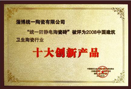 2009年3月16日,由《陶瓷信息》報(bào)與中國(guó)建筑陶瓷協(xié)會(huì)、搜狐、焦點(diǎn)家居網(wǎng)、中國(guó)陶瓷網(wǎng)共同組織的“2008中國(guó)建筑衛(wèi)生陶瓷行業(yè)英雄榜”頒獎(jiǎng)典禮在廣東省佛山舉行,淄博統(tǒng)一陶瓷有限公司在此項(xiàng)活動(dòng)中“防靜電陶瓷磚”喜獲“十大創(chuàng)新產(chǎn)品”、“瓦倫蒂諾”喜獲“十大新銳品牌”兩項(xiàng)殊榮,成為行業(yè)獲得兩個(gè)獎(jiǎng)項(xiàng)的唯一佼佼者。中國(guó)建筑衛(wèi)生協(xié)會(huì)秘書長(zhǎng)廖斌,歐陶企業(yè)董事長(zhǎng)兼《陶瓷信息》報(bào)社社長(zhǎng)歐陽(yáng)天生出席典禮并致辭。