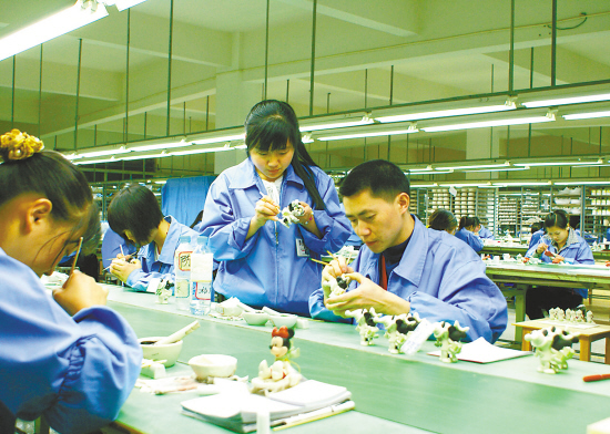 高檔陶瓷已發(fā)展成為南通的特色出口產(chǎn)業(yè)。去年,南通出入境檢驗(yàn)檢疫局共接受出口陶瓷報(bào)檢332批,數(shù)量304.7萬件,金額1096.9萬美元。圖為南通一家陶瓷公司的工人們正在精心制作出口陶瓷。