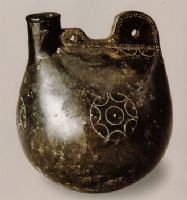 說 明: 壺身滿掛綠釉,壺體仿皮囊形,上圓下扁.
