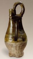 說(shuō) 明: 壺體呈包裹狀,淡紅陶胎,胎質(zhì)堅(jiān)硬.上白色化妝土,施褐綠色釉.