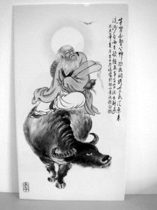 《老子出關(guān)》,是相傳中的經(jīng)典作品。一位須發(fā)老人,坐在牛背上,一邊打著扇子,一邊優(yōu)雅前行。飄逸的白發(fā)連著飄逸的白胡須,就連眉毛、胡子也都是銀白色的。作品栩栩如生地刻畫了一位智者的儒雅從容,坐而論道。