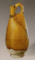 說 明: 此壺胎質(zhì)較粗,故施黃釉之前,先施一層潔白的化妝土,用來遮蓋。外部黃釉不到底。
