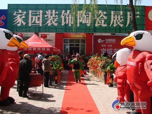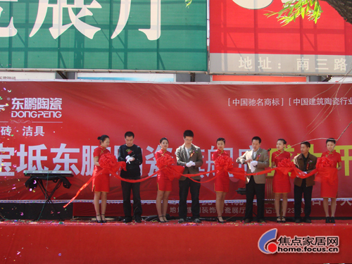 上午9:58分禮炮齊鳴,花車上鑼鼓喧天,禮花齊放,一派喜慶的氣氛。在剪彩儀式上曾海東總監(jiān)發(fā)表演講,向前來參加開業(yè)大典的各界人士講解東鵬陶瓷的營銷管理銷售理念及發(fā)展前景。徐培植總經(jīng)理發(fā)表致辭時(shí)說:““東鵬”作為一個(gè)國際知名品牌,一個(gè)行業(yè)的標(biāo)志性品牌,將一如既往,以自然時(shí)尚,健康環(huán)保為理念生產(chǎn)更多的名優(yōu)產(chǎn)品,進(jìn)一步滿足各界人士對(duì)東鵬產(chǎn)品的生活需求,這次戰(zhàn)略開店也為寶坻消費(fèi)者提供了大量出口轉(zhuǎn)內(nèi)銷產(chǎn)品,滿足了日益富裕起來的社會(huì)主義新農(nóng)村的消費(fèi)者,也提供了更多的就業(yè)機(jī)會(huì)。接下來是楊威總經(jīng)理發(fā)表熱情洋溢地講話,他衷心的感謝一直關(guān)注和支持“東鵬”產(chǎn)品的各界人士,這次開業(yè)引起了整個(gè)寶坻區(qū)建材行業(yè)內(nèi)的廣泛關(guān)注。