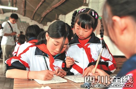 昨日上午,一場名為《自然、綠色、愛》的陶瓷壁畫創(chuàng)作活動在成都市新都區(qū)三河街道的一家陶瓷藝術(shù)村舉行。來自都江堰向峨小學(xué)的近20名同學(xué)和成都川大附小、行知小學(xué)等學(xué)校的同學(xué)們一道,在上百件陶瓷藝術(shù)磚上繪制了主題畫作。這批藝術(shù)磚經(jīng)過烤制后,將和美國肯塔基的小學(xué)生們繪制的陶瓷藝術(shù)磚一起拼成一組陶瓷壁畫,在都江堰向峨小學(xué)的藝術(shù)墻上展示。