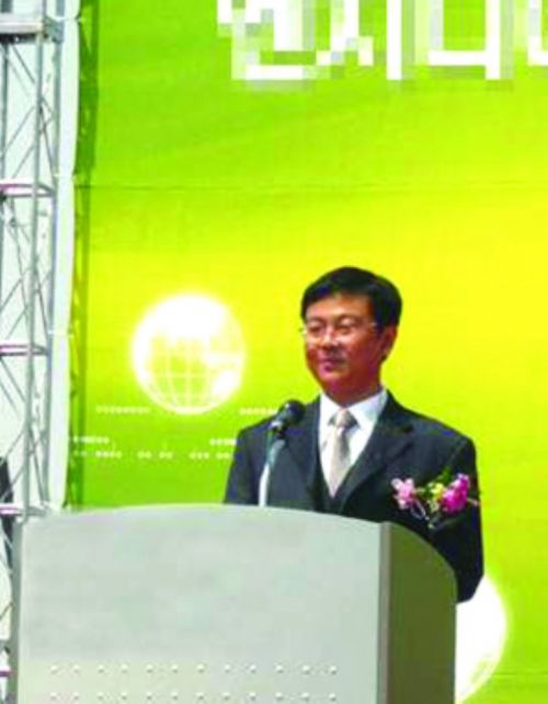 韓國(guó)公司在4月9日人造石生產(chǎn)線廠區(qū)舉行的整線竣工慶典上,吳躍飛總經(jīng)理代表石材公司在慶典上演講。